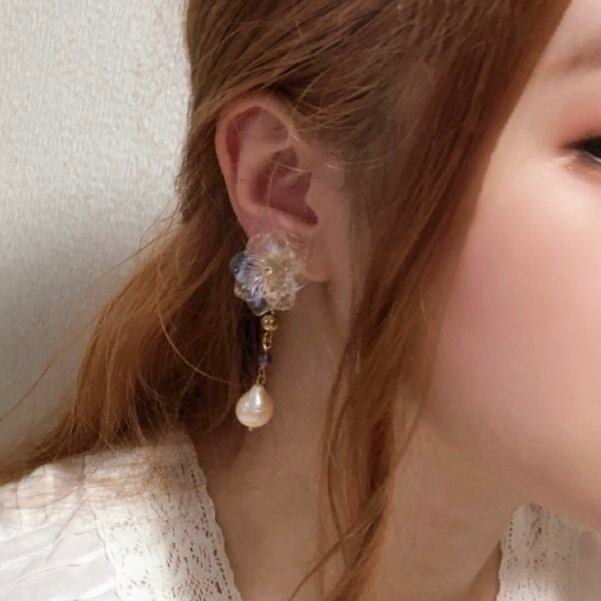 暑い夏にぴったりの、涼し気なクリアイヤリング。